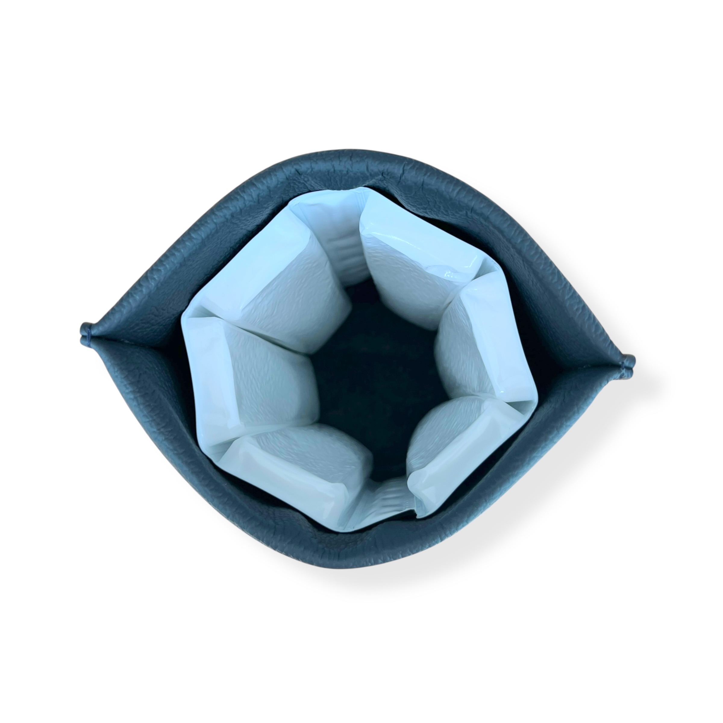 - Kleur | materiaal: antraciet blauw soepel leer.